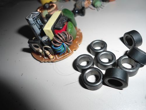 كما استطعت الحصول على مجموعة من قلب فيرايت دائري والمستخدمة في الدائرة الالكترونية للمصابيح الاقتصادية وسوف استخدمها في صناعة المحولات لانها ذات محاثة عالية